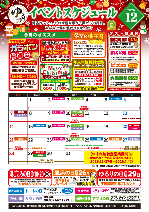 [岩盤浴] 8:00~23:00(最終受付 22:30)