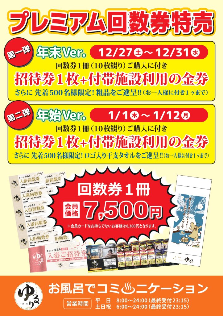 回数券1冊ご購入につき招待券1枚+付帯施設利用の金券プレゼント